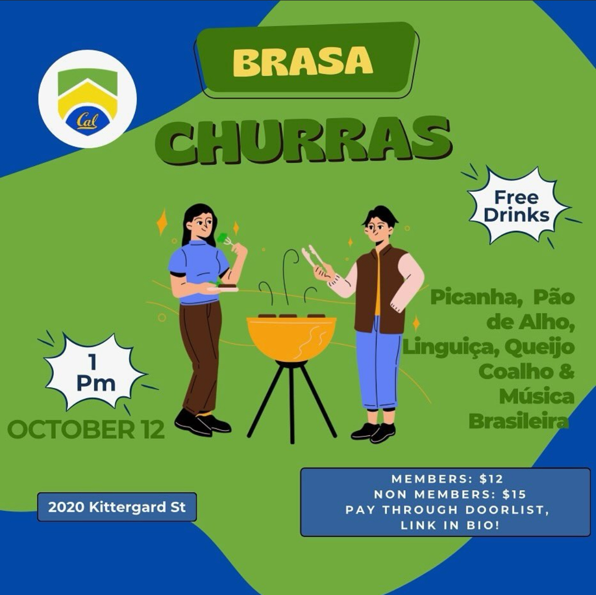 Join us for our BRASA BBQ on Oct 11 at 11:30 AM at 2020 Kittredge St, Berkeley! Brazilian steaks π₯©, sausages π, garlic bread π§π₯, and drinks π₯€. Pre-Sale: $13 Β· Sale: $16 Β· Door: $20. Bring a friend and enjoy a taste of Brazil! π§π·